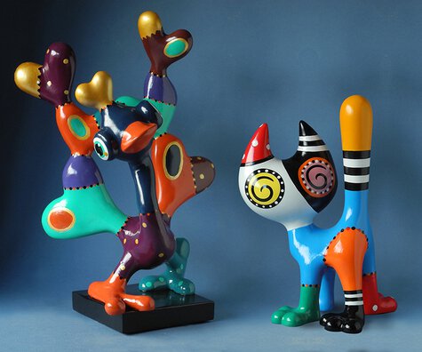 We welcome peacock Bob and cat Ink in the collection of Jacky Zegers. (JZ16 – h. 39,5 cm., JZ17 – h. 17,5 cm.)