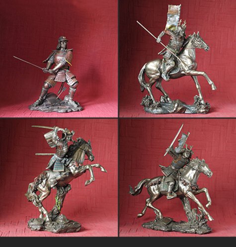 Samurai, those who serve. The samurai were the hereditary military nobility and officer caste of medieval and early-modern Japan from the late 12th century until their abolition in 1876. (WU71010, WU72582, WU72481 & WU71599 – h. 16,5 – 27 cm.)