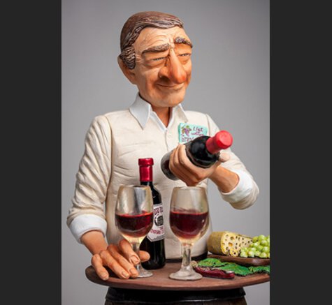 A wide smile brightenes his rather craggy face: Jean-François enjoys the ruby red of one of the most expensive wines in the world. (FO85547, The Wine Lover – h. 42 cm.)