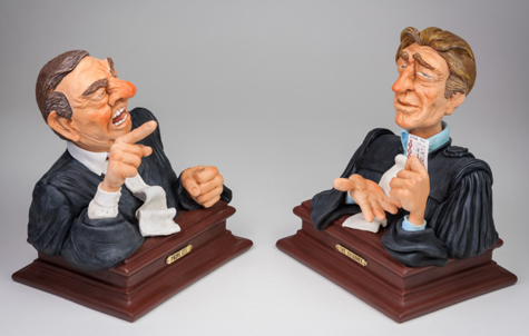 Guillermo Forchino’s lawyer busts: ‘PROVE-IT!’ versus ‘THE EVIDENCE’. (FO85705 & FO85706 – h. 21 cm.)