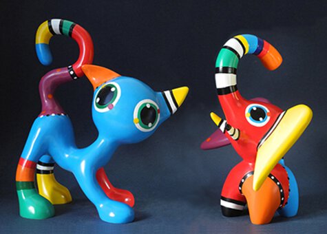 Jacky Zegers is inspired by nature: animals, plants, all life’s myriad manifestations. Nature loves structure and Jacky incorporates these patterns into her work. She does so to show people, and make them feel, how beautiful life is, with a nod and a wink. (JZ08 & JZ03 – h. 25 & 22 cm.)