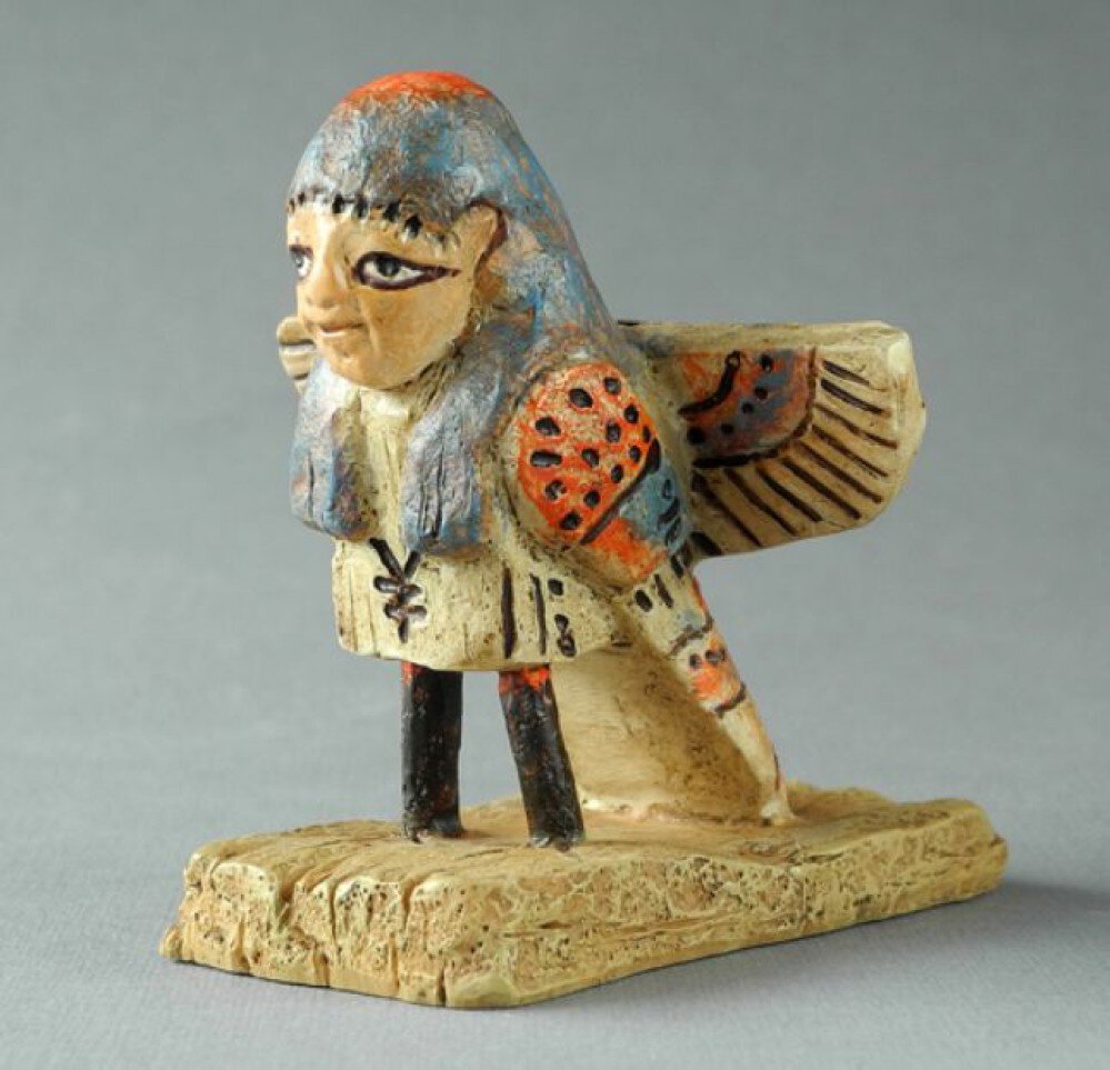 Ptolémees (305 – 30 B.C.) The Ba is one of the five constituent parts of the human soul. It stands for everything that makes an individual unique. The term is close to what we now refer to as someone’s personlailty or character. Someone’s Ba lives on after their death and is therefore often depicted as a bird with a human head flying out of the grave. This statuette dates back to the Ptolemaic period named after the Greek rulers Alexander the Great instated after capturing Egypt.