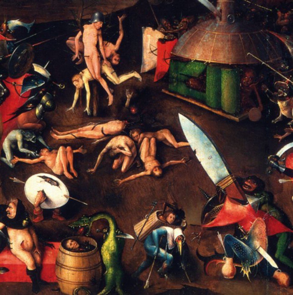 Hiëronymus Bosch warns us against the consequences of a life of sin. The downfall of the rebellious angels on the left panel heralds the beginning of the end. Further, one sees the chosen few in heaven, with below them the vast remainders who will have to undergo the most horrendous tortures on Judgement Day.