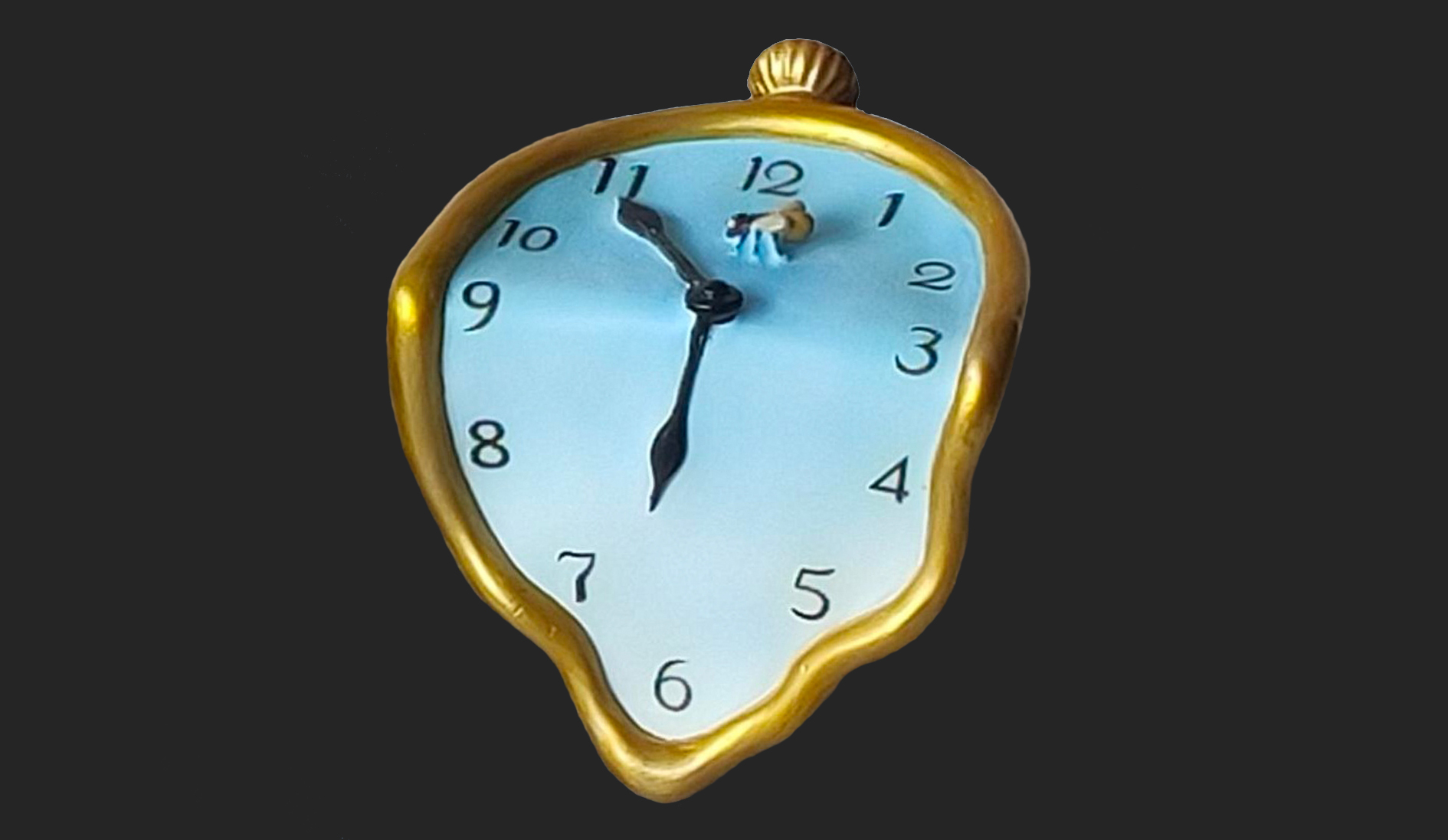 The distorted clocks appear to liquefy, pictured as “the camembert of time” in Dali’s phrase, symbolizing the fluidity and instability of time in dreams or altered states of consciousness.