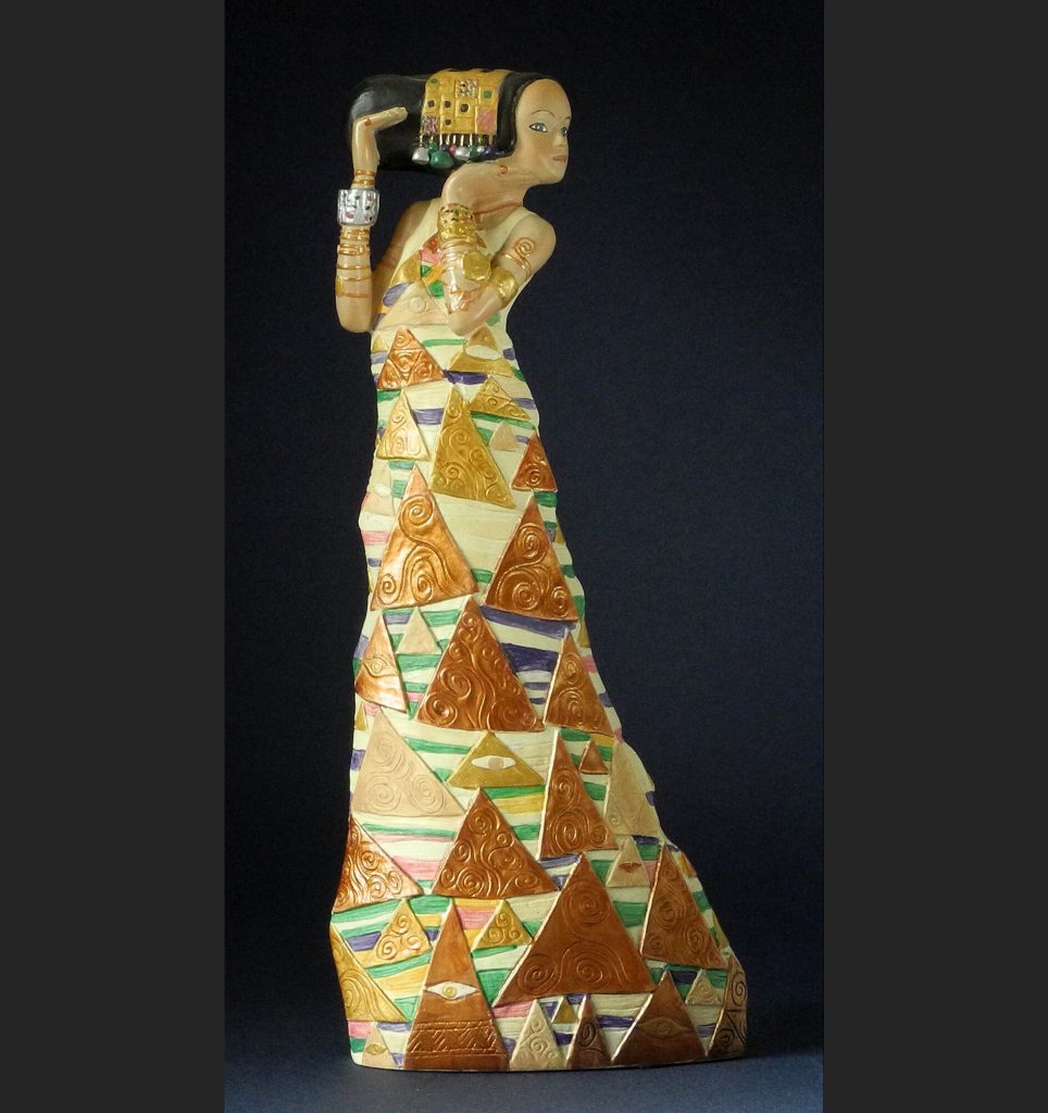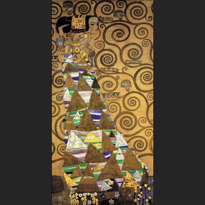 Klimt himself, a man of few words, later called this image simply 'the dancer'. It could be though that this geometrical ornamented portrayal has a logical connection with 'The Fulfilment', which also forms a part of a mocsaic design in the 'Palais Stocket' in Brussels.
