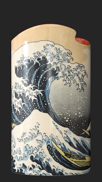 The famous woodcut of the great wave with Mount Fuji in the background was the first in the renowned series Thirty-six Views of Mount Fuji from the late Edo period. The huge wave threatens to engulf two ships off the coast of Kanagawa prefecture (directly south of Tokyo).