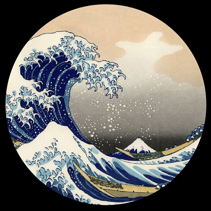 The famous woodcut of the great wave with Mount Fuji in the background was the first in the renowned series Thirty-six Views of Mount Fuji from the late Edo period. The huge wave threatens to engulf two ships off the coast of Kanagawa prefecture (directly south of Tokyo).