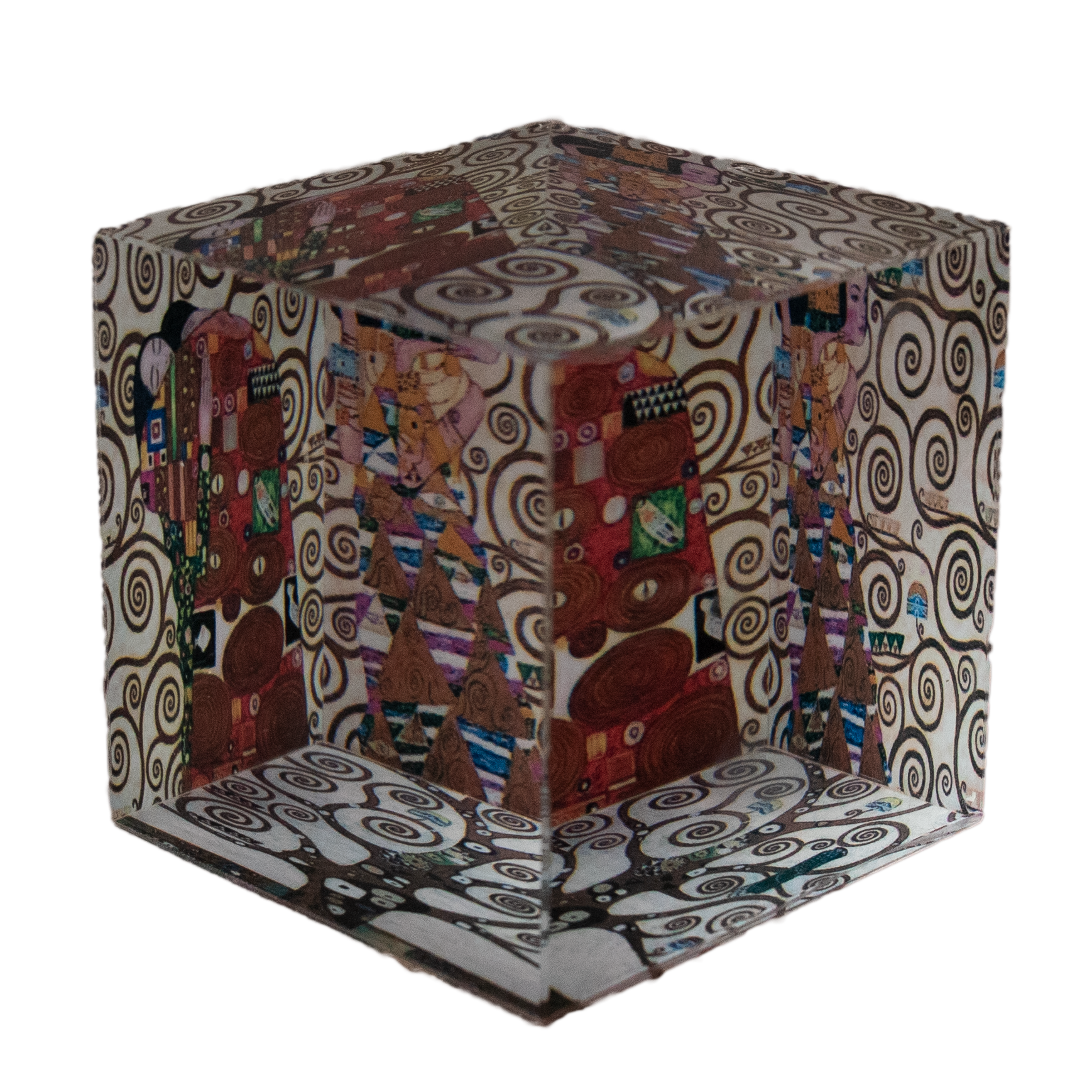 Bring a piece of lush, decorative art into your home with this beautiful Stoclet Frieze paperweight from our QB-Art collection. The iconic masterpiece by Gustav Klimt comes to life in a captivating kaleidoscopic effect that plays with color, light, and depth.