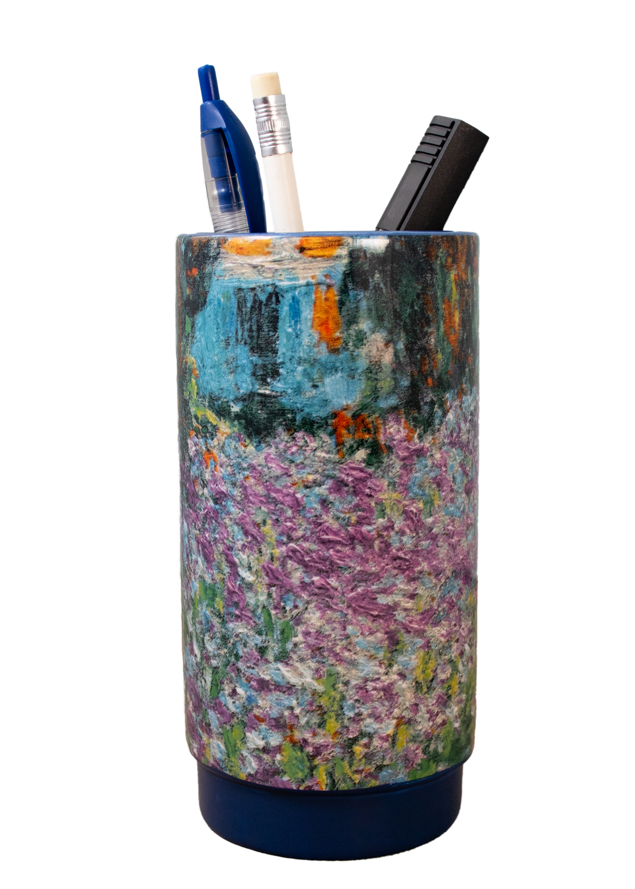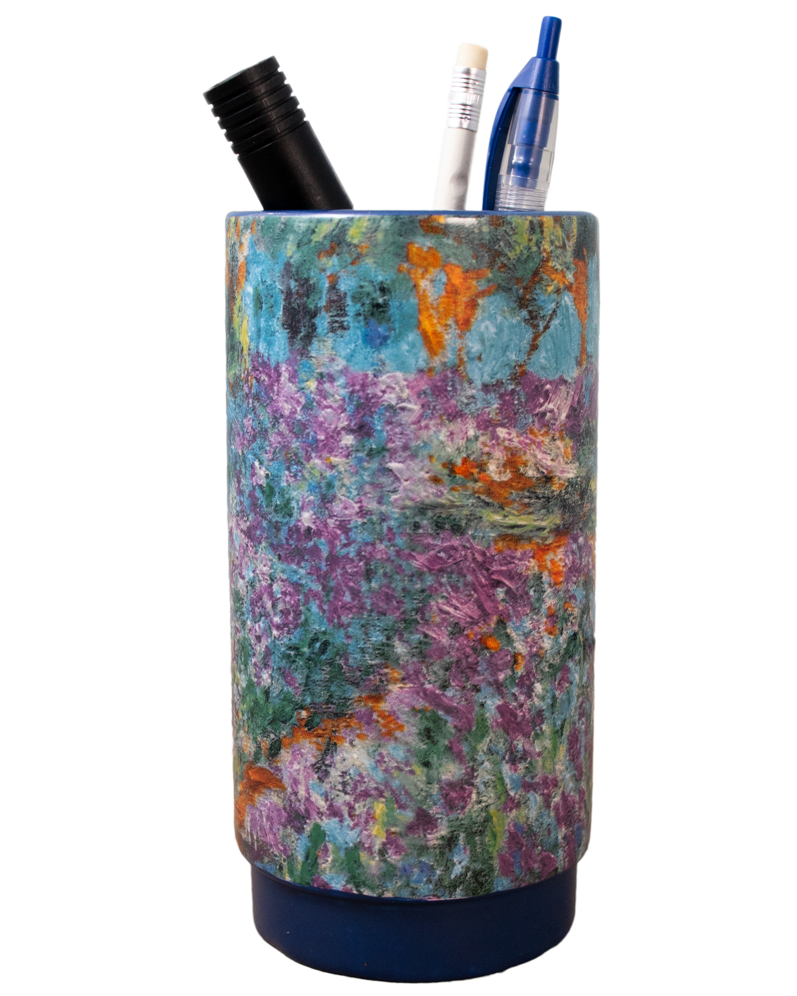 Bring the serene beauty of Claude Monet to your desk with our pen holder featuring Garden (ca. 1900). Monet, a master of Impressionism, captured the delicate interplay of light, color, and nature with remarkable sensitivity. His lush gardens, filled with blooming flowers and soft green tones, invite a sense of calm, inspiration, and appreciation for the small wonders of everyday life.