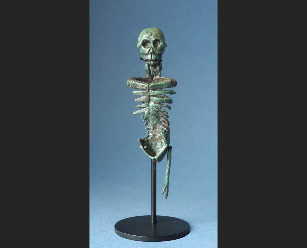 In total, there are ten similar skeletons that are known to exist, one in silver, one in wood, and the remaining in bronze. All of the skeletons have much in common stylistically. The unanatomical rendering of the bones, a feature shared by all the skeletons, reveals the artists’ and craftsperson’s lack of scientific accuracy. It was perhaps more important that the bony specters were lively; hence; their articulation and resulting fluid and dancing movements were emphasized.