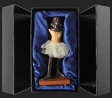 After beginning to lose his eyesight after his fiftieth birthday, Degas became increasingly dependent on his sense of touch and so started to turn from painting to sculpting. Although during the last period of his life he hardly ever showed his work to anybody, he decided, after working on The Dancer for more than two years, to send his work to the impressionist exhibition in Paris.