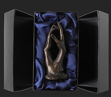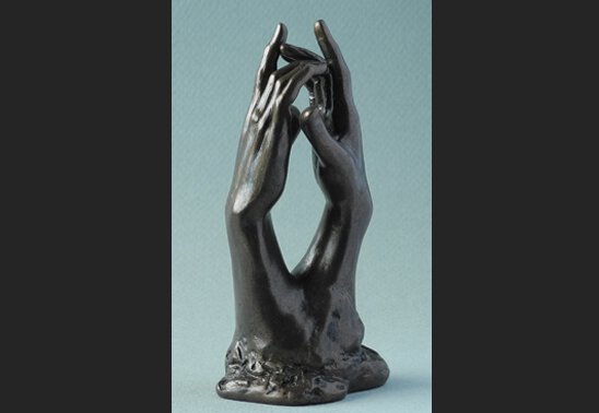 Rodin was fascinated by the expressiveness and symbolism of hands. In his famous sculpture ‘The cathedral’ for example, the hands mirror majestic Gothic architecture. These two graceful hands are a study for ‘The Secret’, a marble sculpture in which two right hands clutch an abstract, rectangular ‘secret’.